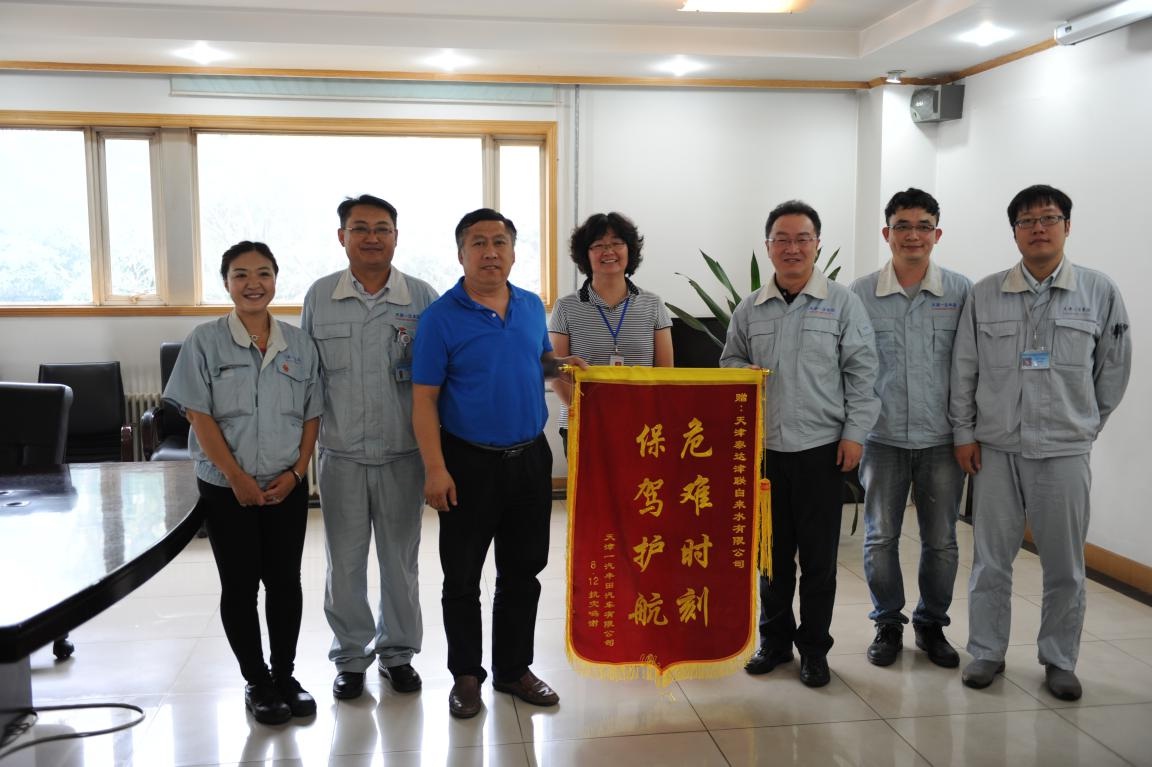2015年9月22日天津一汽豐田送來一面秀有“危難之中 保駕護(hù)航”的錦旗。該公司表示對天津泰達(dá)水業(yè)有限公司在“8.12”重大爆炸事故后,第一時(shí)間給予企業(yè)恢復(fù)生產(chǎn)的大力支持和配合表示感謝!