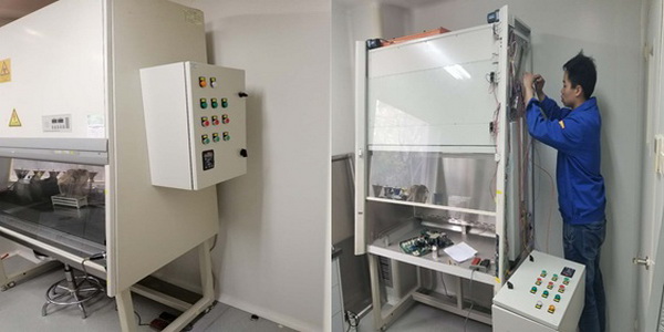 今天我們在這里講述的就是水業(yè)工匠謝文浩同志為水質(zhì)監(jiān)測中心維修生物通風(fēng)柜的事跡。公司水質(zhì)監(jiān)測中心的生物通風(fēng)柜控制系統(tǒng)出現(xiàn)故障,無法正常使用。生產(chǎn)設(shè)備部負責(zé)人員多次與廠家技術(shù)人員溝通,廠家給出的解決方式就是更新設(shè)備。面對一個柜體還很新的故障通風(fēng)柜,生產(chǎn)設(shè)備部想到通過自主維修來解決,這個想法得到了公司董事長和相關(guān)負責(zé)人的大力支持。水業(yè)工匠、自控主管謝文浩成為維修第一人選。謝文浩接到維修任務(wù)后,立即安排好本崗工作,隨即到達設(shè)備現(xiàn)場后,先是了解生物通風(fēng)柜的各項參數(shù)和使用功能,迅速排查找到了故障原因,設(shè)計了有效解決方案:即自己動手開發(fā)一個新的控制系統(tǒng),替代原來的控制板,開發(fā)費用僅2000余元,而更換新設(shè)備需要5萬余元。