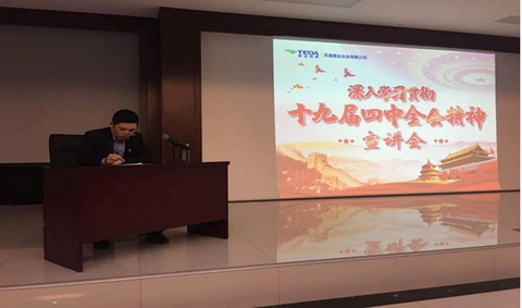 為推動黨的十九屆四中全會精神在泰達水業(yè)落地生根,根據(jù)公司黨委《關(guān)于學習宣傳貫徹黨的十九屆四中全會精神的工作方案》安排,12月12日,黨委書記、董事長方自毅在凈水廠武警營房一樓會議室為領(lǐng)導班子成員、中層管理人員(含副職)和全體黨員進行了黨課宣講,共計130余人參加了此次會議。