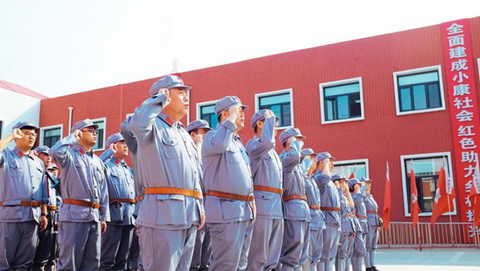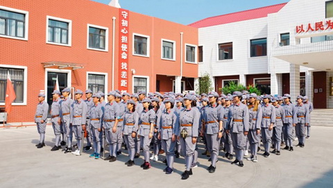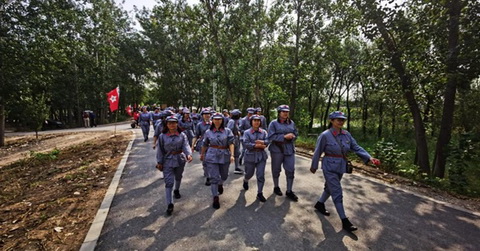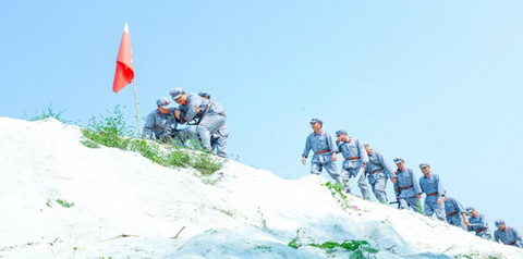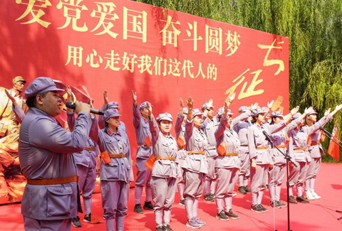 身著紅軍服,頭戴八角帽,全體黨員整裝列隊(duì),“紅軍戰(zhàn)士”的自豪感油然而生。在軍團(tuán)長的帶領(lǐng)下,黨員們集中觀看了長征紀(jì)錄片,重溫了入黨誓詞,并舉行了“重走長征路”授旗儀式,心靈在莊嚴(yán)的宣誓中和鮮紅的黨旗、軍旗下受到凈化和洗禮。