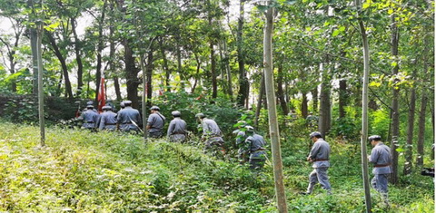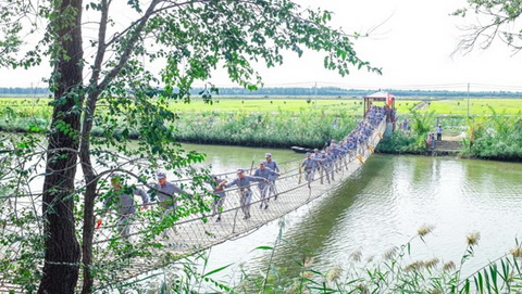 紅旗招展,紅歌嘹亮,隨著軍團(tuán)長響亮的“出發(fā)”號(hào)令,大家沿著村委結(jié)合長征歷史并依托自然資源設(shè)計(jì)的行軍路線,懷揣對(duì)長征史的探索和追求,踏上“長征路”。從“江西瑞金”出發(fā),途經(jīng)“敵四道防線”、“強(qiáng)渡烏江”、“占領(lǐng)遵義”、“強(qiáng)渡大渡河”、“飛奪瀘定橋”、“翻雪山”、“過草地”,最后“勝利大會(huì)師”,經(jīng)過2個(gè)多小時(shí)徒步行走,穿梭實(shí)景模擬場(chǎng)地,身臨其境,感受“槍林彈雨”,感悟革命先輩們堅(jiān)韌不拔的革命信念,不怕犧牲、浴血奮戰(zhàn)的英勇無畏的革命氣概。