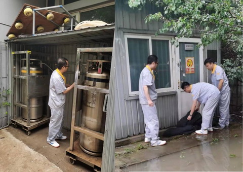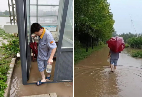 同志們早早出門,卻因道路積水通行不暢,反復(fù)繞路迂回,原本十幾分鐘的路程,卻經(jīng)歷了幾個(gè)小時(shí)。幾經(jīng)周折,終于抵達(dá)單位,可同志們首先想到的不是個(gè)人的安危,沒有片刻的停留,而是第一時(shí)間查看重點(diǎn)區(qū)域的漏雨情況,及時(shí)將沙袋放置在庫房門口,以保障生產(chǎn)物資。