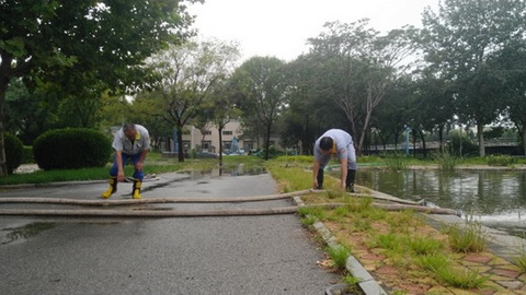 8點(diǎn)開發(fā)區(qū)雨勢(shì)持續(xù)增大,廠區(qū)路面開始出現(xiàn)大量積水,防汛小組分別對(duì)每個(gè)防汛點(diǎn)排水,并持續(xù)對(duì)所有構(gòu)筑物及設(shè)備進(jìn)行巡視保證正常運(yùn)行。
